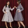 - weißes Kleid mit schwarzen Punkten und roten Elementen