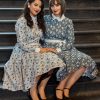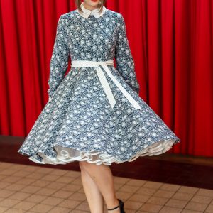 - schwarzes Kleid mit weißen Punkten und Rosenprint